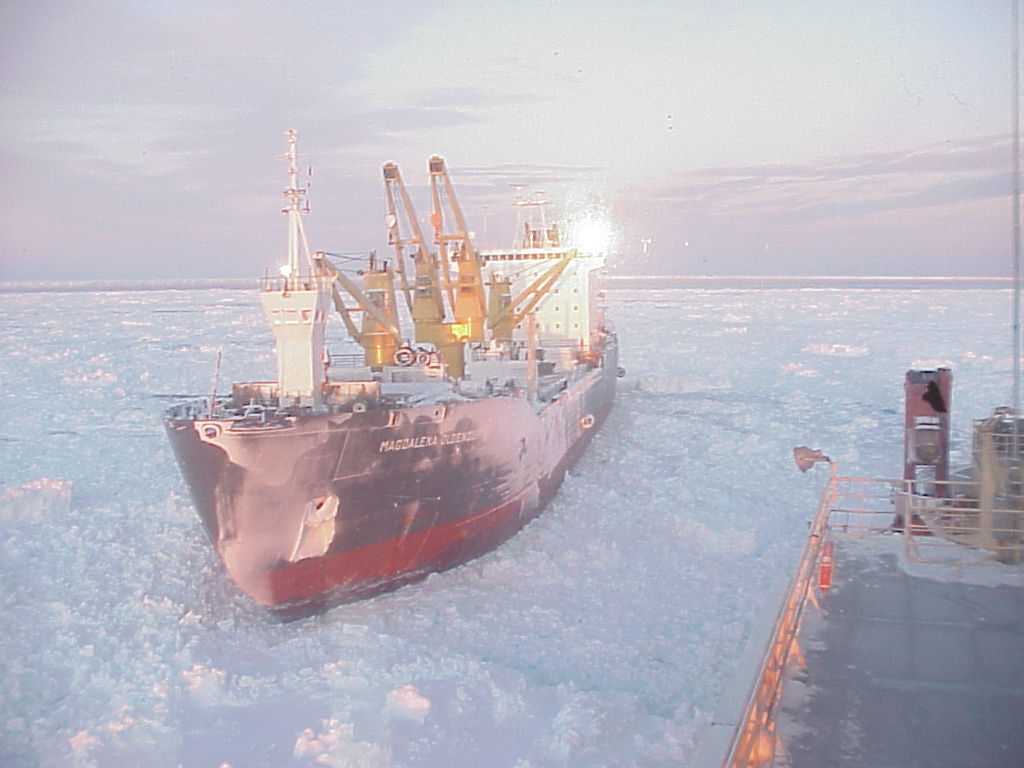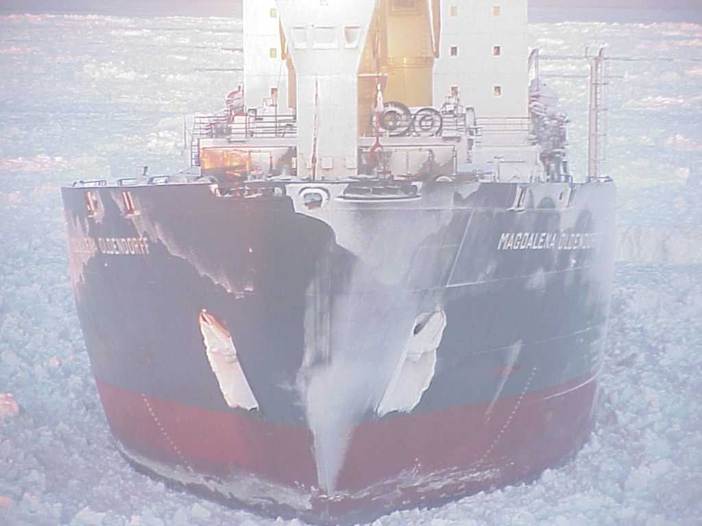 Durante junio de 2002 el buque alemán "Magdalena Oldendorff" completaba su misión de relevar personal y reabastecer bases científicas antárticas al servicio del Arctic and Antarctic Research Institute (AARI) de Rusia. Por diversas causas demoró su partida y la ruta que debía seguir fue bloqueada por el campo de hielo cuando retornaba de la base rusa de Novolazarevskaya.