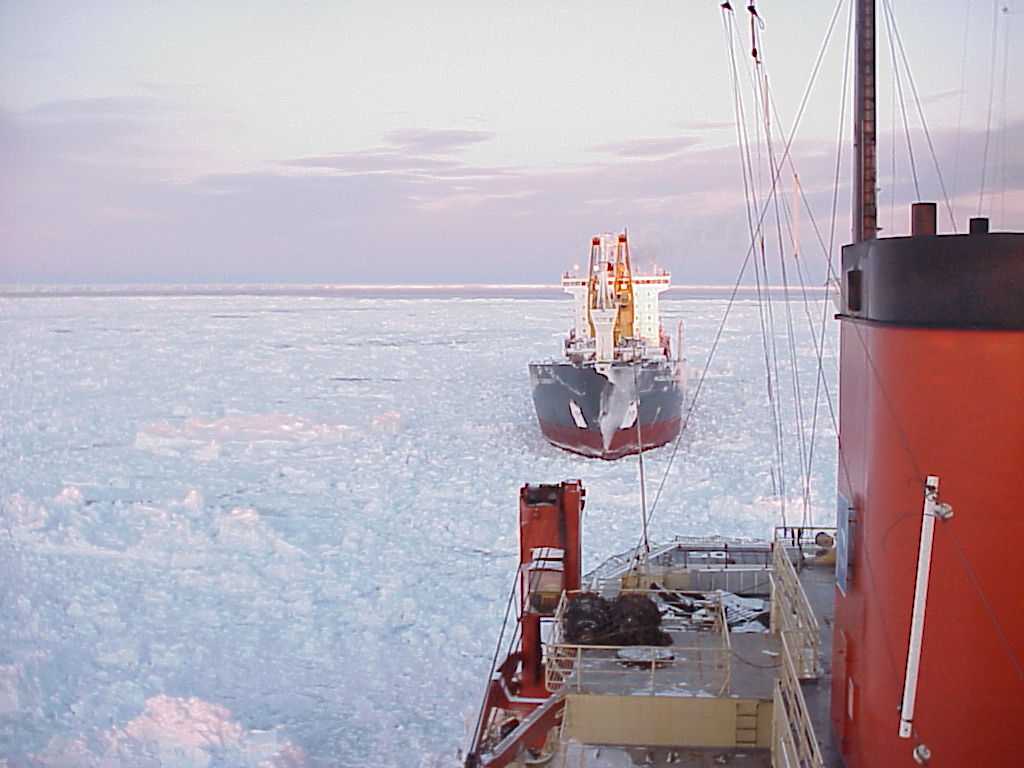 Durante el tiempo que duró el reabastecimiento, se efectuaron diferentes reuniones con el Capitán Dicky a bordo del rompehielos, donde se analizaron las posibilidades de una navegación segura hacia aguas abiertas. Una vez estudiadas las diferentes fotos satelitales que nos daban una idea de la situación del campo de hielo (el cual a esta altura del invierno ya se presentaba muy complicado) y con la información que proporcionaba el National Ice Center de EE. UU., se seleccionó una posible derrota para transitar en convoyado, con el Almirante Irízar a proa del MO, abriendo una ruta en el hielo.